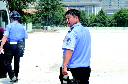 执勤民警大汗淋漓。 通讯员 李明珠 摄