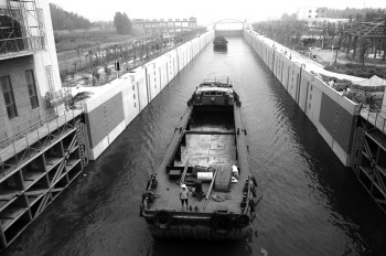 其中,嘉祥船闸工程是洙水河航道改造工程的重要组成部分,也是连接洙水河上下游的唯一通路,起到通航和控制水网平衡的重要作用。2010年6月份开工建设,设计通航能力1960万吨,属于三级船闸,设计总投资1.18亿元,7月14日开始放水,现在正在进行有水调试。