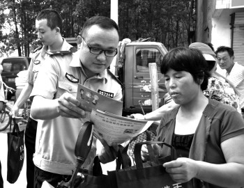 近日,济宁市公安局高新区分局组织民警到王因街道娄庄集开展民意主导警务宣传活动。活动中,民警详细向群众介绍了9600110热线与110报警电话的区别,发放宣传资料600余份。 本报通讯员 盛兴田 张国英 摄