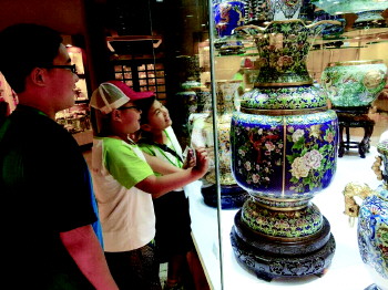 景泰蓝博物馆内,小营员们观赏传统珐琅工艺品。本报记者 于伟 摄