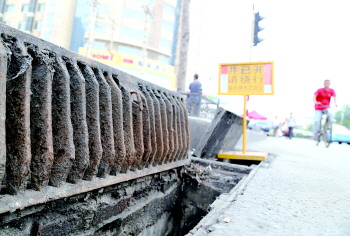 24日,为迎接即将到来的暴雨,保证市区道路迅速排水,芝罘区各下水道井盖已全部打开。 本报记者 韩逸 摄