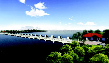 在挡潮闸工程施工方面,施工单位将在入海口处建设一处宽290米、23孔的挡潮闸,在满足防洪排涝的前提下,可拦蓄淡水,防止海水倒灌。据悉,挡潮闸蓄水深度0.8米至2.5米,可蓄水79万立方米。220米至385米宽的水面,可形成面积达48万平方米的水面景观。目前,挡潮闸方案设计已完成,计划下半年开工建设。