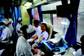 目前岛城进入夏季的高温期,街头参加无偿献血的市民减少,而同期医院临床的医疗急救用血到达高峰值,市中心血站进入血液需求紧张阶段,市精神卫生中心在全市卫生计生系统率先启动医务工作者万人流动血库,主动与市中心血站联系,献血车开进医院,积极开展夏季无偿献血活动。7月23日上午,全院干部职工52人参加无偿献血,参加献血的既有医院的领导、临床一线医务人员,也有行政后勤人员,献血人员比例占到职工总数的15%,献血总量达18100毫升。