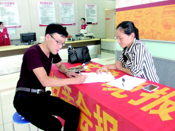 在相亲会报名点,一小伙子积极报名。 本报记者 辛周伦 摄