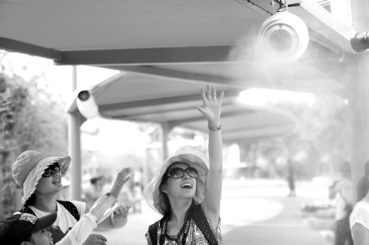 园区喷雾降温系统给游人们带来凉爽的同时,还能降低空气中的污染物。