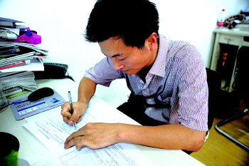 一位男士在本报编辑部报名相亲会。本报见习记者 李威言 摄