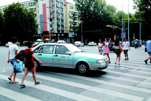 从7月份起,济南开始推行“礼让斑马线”,交警也公布了礼让示意图。记者7月30日调查统计发现,有20%的车辆在路口不注重礼让,与行人争道。另外,也有近四成的行人闯红灯。 本报记者 王媛 摄