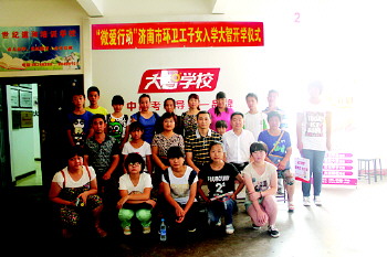 7月27日,“微爱行动”济南市保洁员子女入学大智开学仪式举行,现场共青团济南市委和城管局领导以及大智学校创始人、总校长张维东给孩子们发放了听课证和学习资料,这标志着60位济南市适龄保洁员子女今起将在大智学校正式接受免费学业辅导。