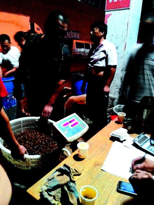 “今年涨价是因为总产量降了,进货的地方涨了价。”在该市场从事金蝉买卖20多年的米先生说,现在金蝉供应量太少,去年单价是37元左右,今年49元左右。主要的进货地就是安徽砀山、河北赵县和山西。一般在河北赵县十天到半个月,再到山西收十天到二十天。销售金蝉就是40天的事。