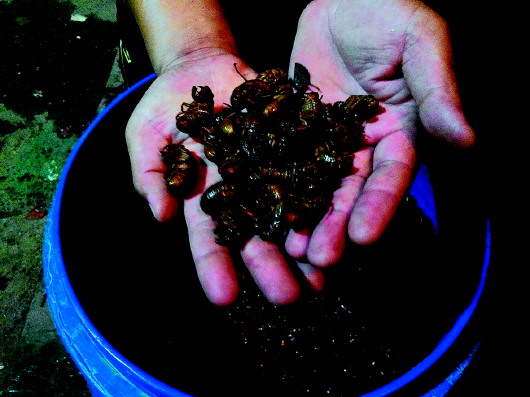 抓得多了很多人还总结出了经验,市民张先生介绍,知了猴到了晚上会从土里爬出来,到树上完成蜕壳。因此抓知了猴一是眼要尖,及时发现那些刚刚爬出来的;二是要凭经验,看着地上不起眼的小洞,拿小棍一挑就会发现里面藏着圆滚滚的知了猴。一时没看见也不要紧,把小棍伸进洞里,知了猴就会抓住乖乖束手就擒。