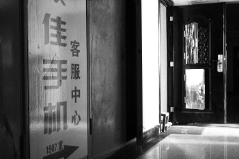 住宅楼内开设的手机售后服务公司。本报记者 高雯 摄