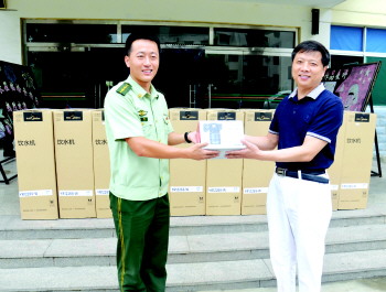建军节前夕,济宁市第二人民医院来到武警济宁支队一大队一中队,慰问武警官兵并赠送了饮水机和数码相机。