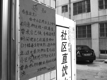在小区大门口,记者发现小区物业7月28日的一张通知,称“由于小区内业主(一部分)不同意物业更换漏保,要求自己换,各楼道抓紧时间把自己的漏保换好,送电前到物业签字,以后小区内再跳闸与物业无关,不要再找物业,各业主自己解决”。