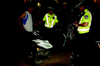 29日晚上9点10分左右,交警一大队三辆巡逻警察来到唐訾路和东湖路路口,两辆摩托车无牌无证被交警暂扣。而在南湖大街的一个网吧前,两辆外形类似助力车的摩托车引起民警注意,经检查都是48CC的轻便摩托车,驾驶员都没有相应驾驶证,交警依法暂扣。据了解,当晚一大队共查获5辆非法改装摩托车,无证驾驶摩托车2起,和其他摩托车交通违法8起。
