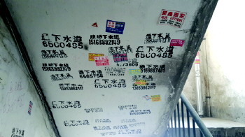 居民张先生说,小广告确实挺难看,不过像这种老小区,有个通下水道的广告,有时也能用得到,只不过能统一贴在一个地方就好了。 小区保洁工人告诉记者,他们只负责垃圾的处理,“我们这是个老小区,保洁工人的人数不足,所以对这些小广告也有心无力,就算清完了很快又被贴上。”