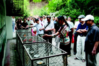 这些老兵在讲述故事的时候,声情并茂,仿佛把员工们带回到了那个硝烟弥漫的年代,员工们也隐约看到了老兵们当年的英雄气概。 图为导游为老同志们讲解动物的科普知识。