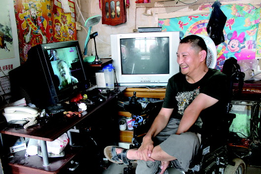 自从2005年用上电脑后,孙文广的生活被彻底改变了。在脑瘫聊天室里,他认识了同为聊天室管理员的武汉姑娘艾娜。