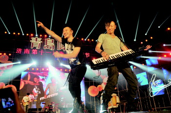 7月30日晚上的啤酒节现场火爆异常,台湾超人气乐队信乐团空降济南,很多歌迷都翘首期盼已久。晚8点50分左右,信乐团现身舞台,立即被观众的掌声、尖叫声包围,啤酒节现场立即升温。