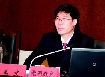 区检察院党组书记、检察长王文给全院检察干警上党课。