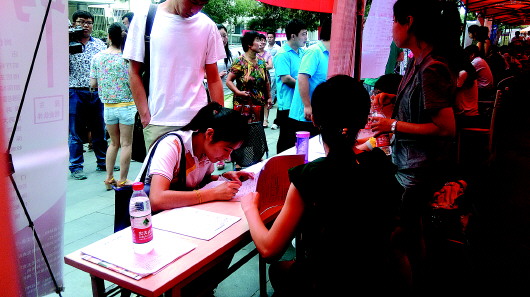 到会应聘的求职者中,不少人准备了精美的个人简历。一位应聘设计岗位的应届毕业生递上自己的简历后,受到了招聘单位的赞叹,“小伙子很用心,简历我们收下,回头再电话联系你。”