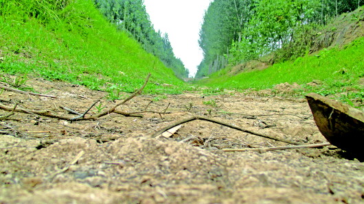 淮里洼村干涸的河道。  本报记者 梁越 摄