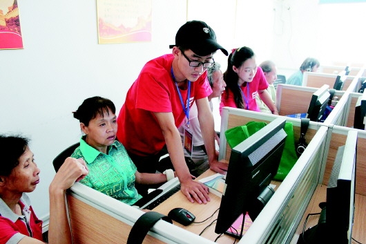 山建大志愿者教老年人用电脑。 本报记者 肖龙凤 摄