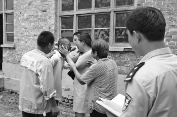 患有智力障碍的男子和家人团聚后抱头痛哭。 本报通讯员 张建国 摄