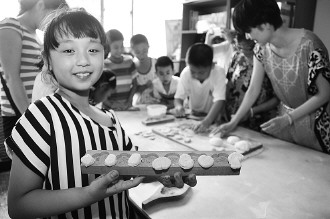 巧果又叫七夕果,七夕情人节即将到来。30日,西北村社区居委会工作人员邀请社区内流动家庭人口的亲子来到社区一起做巧果。孩子们将亲手制作的巧果送给父母,让他们品尝自己的劳动成果。