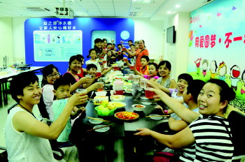 7月31日,12名孩子和父母一起共进“爱的午餐”。这顿午餐共24道菜,是12名孩子亲手下厨做的,而购买食材的钱,是孩子们30日在超市推销饮料和水赚来的。父母第一次吃到孩子做的饭,既激动又感动。“爱的午餐”活动是由本报和安利淄博分公司共同主办,旨在加强孩子们的动手、自理和自立能力,同时体谅父母的不易。 本报记者 姜文洁 摄影报道