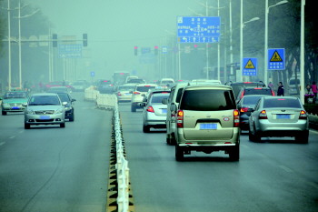 汽车尾气成城市雾霾天的主要因素(资料片)。 本报记者 王鸿哲 摄