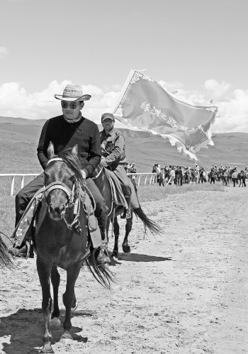 ▲王志一改往日严肃模样,变身草原上“套马的汉子”。