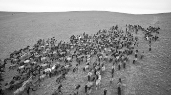 ◥山丹军马场万马奔腾(科比特航拍)。