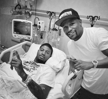 乔治本人在受伤后表现得非常坚强。“我会没事的,我会重新回来,并且比以前更好。”他在推特上这样写道。在医院完成手术后,拳王梅威瑟也来到了医院探望乔治。