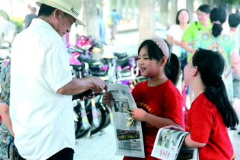 8月3日上午,本报35名小报童在泉城广场集体爱心义卖,头顶烈日的孩子们不畏辛苦,短短2个小时的时间就卖出了1250份报纸,为了能帮助山区的小伙伴们,参与义卖的孩子们都说“不热,不苦,不累”。