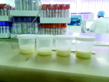 7月31日,记者采集了四份母乳样本,来到济南市妇幼保健院进行母乳成分分析。1号样本取自产后15天的妈妈刘女士,2号样本取自产后52天的张女士,3号样本取自产后八个月的谷女士,4号样本取自产后16个月的刘女士。