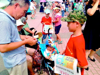 在35名小报童中,有8位是来自济南市新世界小学2011级一班的同学,孩子们相约一起来为山区的小伙伴爱心义卖,赵希硕小朋友看到路边一位老爷爷在看自行车,十分辛苦,他毫不犹豫地拿出一份报纸送给了老爷爷,让陪在一边的妈妈和过往的路人不禁刮目相看。