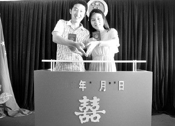 农历七夕节,一对新人领到了结婚证。本报记者 贾凌煜 摄