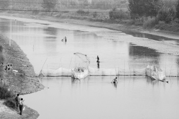 由于降水较少,灌溉用水较多,减河上游水位下降明显,部分河床裸露。8月2日,不少市民趁着水位下降进入河中捕鱼。 本报记者 马志勇 摄