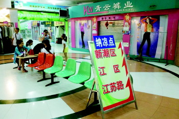 与上述三处纳凉点不同,虽然正值周末,但龙山地下商城的纳凉处显得有些冷清。