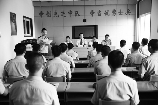 7月29日下午,惠民县法院组织5名法官深入当地武警中队,开展了“送法进军营”活动,通过法律问答、赠阅法律书籍、指导法庭模拟等形式,主动为部队官兵提供司法服务。图为法官为武警官兵解答法律疑问并指导模拟庭审。