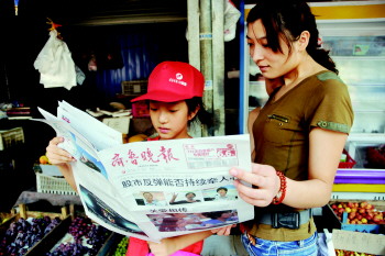 8月3日,小报童杜文寒在卖报时与读者一起读报,分享最新的新闻资讯。通过这样的方式,她自己不仅增长了见闻,还交到了新朋友,揽到了新客源。据了解,第二期小报童活动已经过去一周了,在推销报纸的过程中,各位小报童或是寻找优势地段,或是发展新客源,或是出奇招后发制人,每个人都使出浑身解数,取得了不错的成绩。 本报记者 王鸿哲 摄影报道