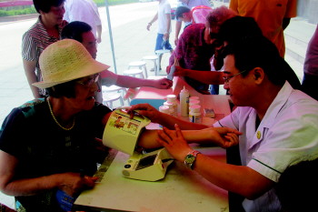 医护人员正在给市民体检。 本报见习记者 唐菁 摄