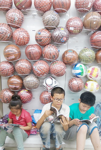 时间:2014年7月25日 自述:几个孩子在篮球下认真看书。 点评:放假了,注意劳逸结合,相约出去打场球吧。