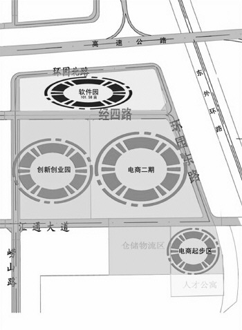 聊城电子商务产业园位于聊城经济技术开发区济聊高速与东外环路交界处,占地面积约800亩,项目总投资约30亿元。园区以汇通智慧创新大厦为起步区,规划建设融电商营运中心、实体交易中心(展示中心)、物流配送中心、综合服务中心、科技孵化中心五大中心功能区,打造集电子商务、创新创业、软件研发三大主体功能于一体的现代服务业产业园区,为各大电子商务企业提供商务办公、产品展示、仓储物流、人才培训、技术交流、创业融资、生活配套等集成性服务。同时大力发展软件研发与服务外包,为大学生创新创业强化服务功能和引领作用,打造独具聊城区域特色的“电商谷”。园区全部建成后可解决就业人员4000余人,实现营业收入1000亿元、利税10亿元。