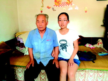 父亲因车祸丧失自理能力,一直由爷爷(左)照顾,李蕾想早日读完书参加工作,不再让爷爷那么累。
