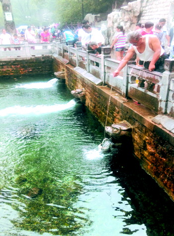 黑虎泉西侧兽头水流比其他两个明显要小。