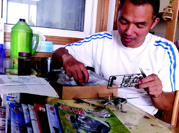 由于对军事的喜爱,于春水下班后的乐趣就是看军事类纪录片和杂志,有时还会拼装坦克、战斗机等军事玩具。“这是二战时期的战斗机模型,别看体积不大,拼装起来还挺麻烦,用了20多天才完成。”于春水说,前些年他在单位做机械维修工作,养成了动手的习惯,拼装玩具模型也成为他闲暇时的一种乐趣。