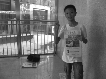 4日早7时许,李嘉明和小伙伴早已在火车站售票厅附近开始了他们一天的“生意”。李嘉明和同学早上不到六点钟,就去潍城区的固定领报点领取了80份报纸,他对自己的要求是,80份报纸必须要在两小时之内完成,因为他要赶在上午十点钟之前去上补习班,到8月11日,他的暑期课外辅导班就结束了,到那时,时间充足了,卖报数量可以一天增加到一百份或者二百份左右。