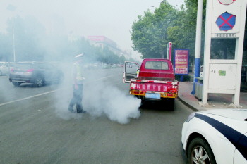 ◤8月4日上午,直属一大队民警在十三局路口查获一辆尾气排放严重超标的小型货车,同时该车存在无左后视镜、雨刷损坏、涉嫌私改、人货混装等违法问题。 本报记者 张磊 通讯员 邱扬 摄影报道