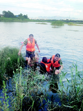 3日下午3点50分,在流亭赵村河边钓鱼的刘先生不经意间看到远处有个人向河里走去,转眼的功夫,水已经没过那个人的前胸。刘先生刚想呼喊问个究竟,就看见一名光着上身的男子向河里扑去,边游边喊:“别干傻事……”一开始,刘先生以为是年轻人闹着玩,但后来下水的男子突然没了身影。因为常来此处钓鱼,刘先生知道虽然附近水域看着不深,但暗沟很多,且水草丛生。担心两人出意外,刘先生赶紧大声呼喊并打电话报警。